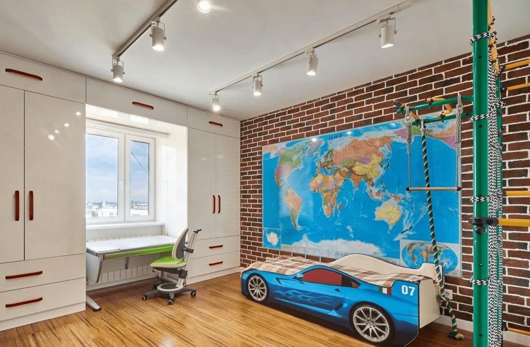 Однако желаемое не всегда совпадает с действительным и ребенку в доме может достаться помещение, где дневного света будет не хватать.
