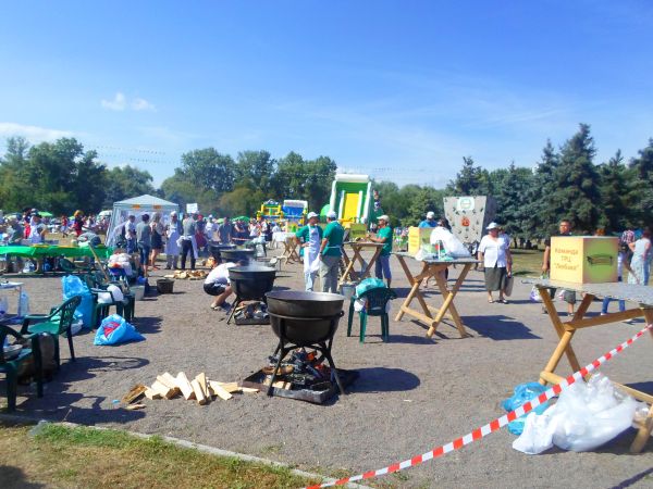 Между собой соревновались 5 команд. В этом году угощения происходили в рамках «Черкасской вкусности». Новинкой мероприятия стал борщ с угрем. Его приготовили работники ТРЦ «Любава».