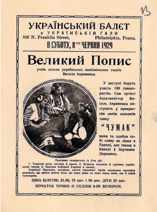У Торонто Василь Авраменко прибув у грудні 1925 року з однією валізою і вже через два тижні з притаманним йому ентузіазмом взявся за справу – він виступав з лекціями з історії України, знайомив канадців з культурною спадщиною українського народу і, звичайно ж, створював нові школи танців, де молоді люди з української діаспори долучалися до високого мистецтва народного танцю їхньої Батьківщини. Концерт його учнів, що відбувся в Національній концертній залі Канади і зібрав понад 25 тисяч глядачів, пройшов з приголомшливим успіхом, а заокеанська критика із захопленням оцінила талант українського танцюриста і хореографа.